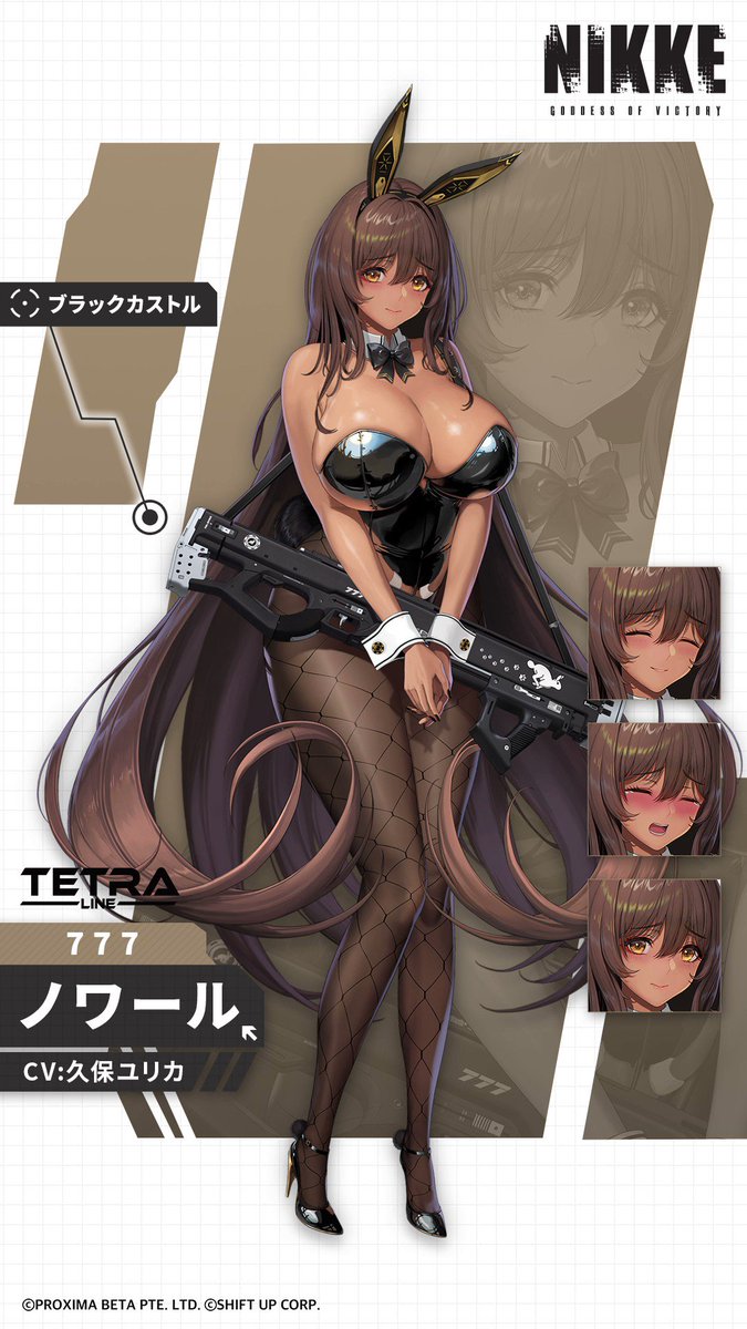 NIKKEを知らない方に説明すると、ノワールはコインラッシュというエンターテインメント施設で働いているバニーガールですね!ブランという双子の妹がいます。NIKKEの公式Xより画像を引用します。